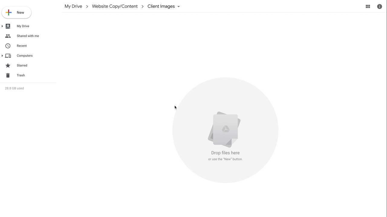 With cloud services like Google Drive and Dropbox, sharing files can be very easy. You can create folders in these storage platforms, and upload files and images and share the folders with others. We ask our clients to use Google Drive, which is our preferred platform for sharing website content and images, but we also use Dropbox.